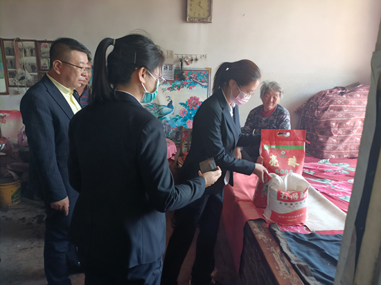 蔚縣國(guó)威大藥房開展愛(ài)心幫扶活動(dòng),為桃花鎮(zhèn)謝家廟村生活困難老人送去米、面、油等生活用品。 蔚縣縣委組織部供圖