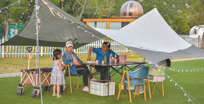 “三五好友結伴而行,喝茶賞景,好不愜意。”程曉說,“現(xiàn)在市場上有很多比較成熟的露營產(chǎn)品可選擇,有的只提供帳篷等設備,需要自備餐食,有的是全包,吃住游所需都準備好了,還有些個性化的產(chǎn)品會提供桌游、羽毛球等休閑項目。”在體驗過幾次露營后,程曉正打算帶上父母一起戶外郊游。
