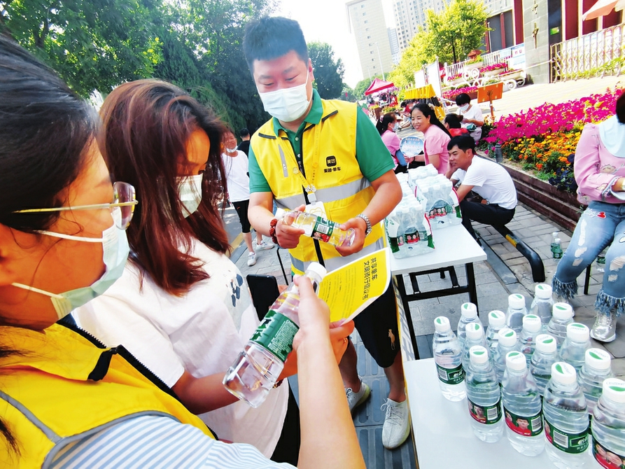 6月20日,太原市交通運輸綜合行政執(zhí)法隊在太原二十七中考點規(guī)范周邊環(huán)境,為考生及家長提供免費騎行服務(wù),并提供礦泉水和休息處。(圖由孫榮祥 段賀鵬攝)
