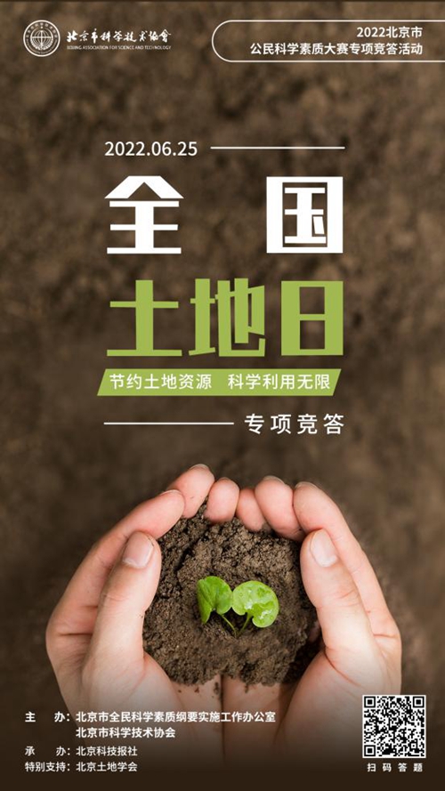 據(jù)了解,“節(jié)約土地資源 科學(xué)利用無限”專項(xiàng)競答活動是2022北京市公民科學(xué)素質(zhì)大賽推出的系列專項(xiàng)競答之一。北京市公民科學(xué)素質(zhì)大賽形式多樣,聯(lián)合北京市綱要辦成員單位、市屬學(xué)會、高校科協(xié)等開展系列專題競答,進(jìn)一步貫徹落實(shí)《北京市全民科學(xué)素質(zhì)行動規(guī)劃綱要(2021—2035年)》,著力發(fā)揮“首都科普”品牌活動的示范引領(lǐng)作用,開創(chuàng)熱愛科學(xué)、崇尚創(chuàng)新的科學(xué)素質(zhì)建設(shè)新局面。