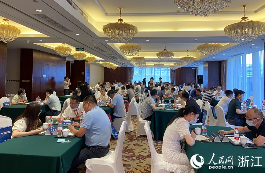 全省產(chǎn)業(yè)鏈山海協(xié)作現(xiàn)場推進會暨“意向企業(yè)”走進青田活動現(xiàn)場。人民網(wǎng) 方彭依夢攝