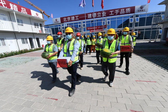 北京市已進(jìn)入盛夏高溫時(shí)節(jié),防暑降溫工作直接關(guān)系到勞動(dòng)者身體健康和企業(yè)生產(chǎn)安全。7月7日,由北京市總工會(huì)主辦的“最美勞動(dòng)者 微笑帶回家”系列活動(dòng)暨清涼送給首都建設(shè)者活動(dòng),在北京建工路橋集團(tuán)通州數(shù)據(jù)中心項(xiàng)目舉行,北京建工路橋集團(tuán)黨委書記王曉輝代表公司黨委、工會(huì)對(duì)建設(shè)者進(jìn)行慰問(wèn),向奮戰(zhàn)在施工一線建設(shè)者們送去清涼及防疫物資和真摯問(wèn)候。