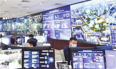 走進這座智慧城市的“中樞”──生態(tài)城“城市大腦”運營中心,只見以深藍為主色調(diào)的超大液晶屏鋪滿整面墻,科技感拉滿。屏幕上的數(shù)據(jù)和信息背后,是建設(shè)、環(huán)境、醫(yī)療、應急等10多個領(lǐng)域的實時運行情況,涉及30余個系統(tǒng)、400余項指標。工作人員目不轉(zhuǎn)睛地監(jiān)測、記錄、反饋,在做到心中有“數(shù)”的同時,也將城市管理運營模式從“被動處置”轉(zhuǎn)為“主動干預”。