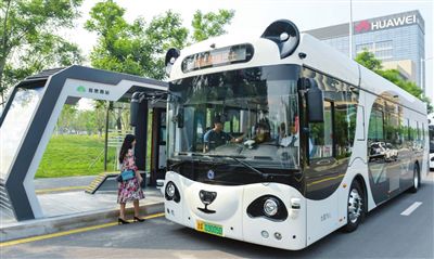 中新天津生態(tài)城“智慧熊貓公交”。 記者 吳迪 攝