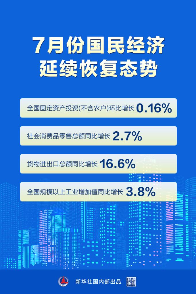 國家統(tǒng)計(jì)局:7月份國民經(jīng)濟(jì)延續(xù)恢復(fù)態(tài)勢