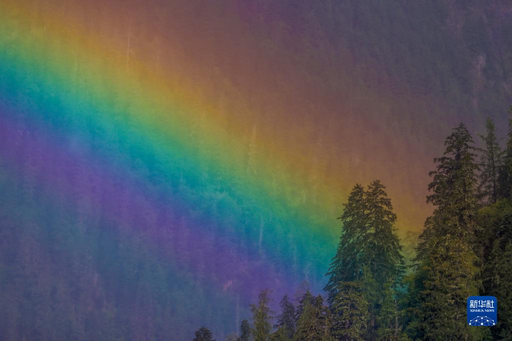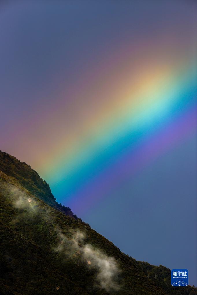 這是8月29日在巴松湖拍攝到的彩虹。新華社記者 姜帆 攝