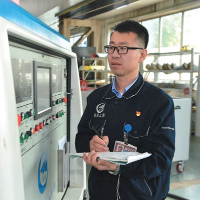 孫志強(qiáng)在記錄設(shè)備加工數(shù)據(jù)。