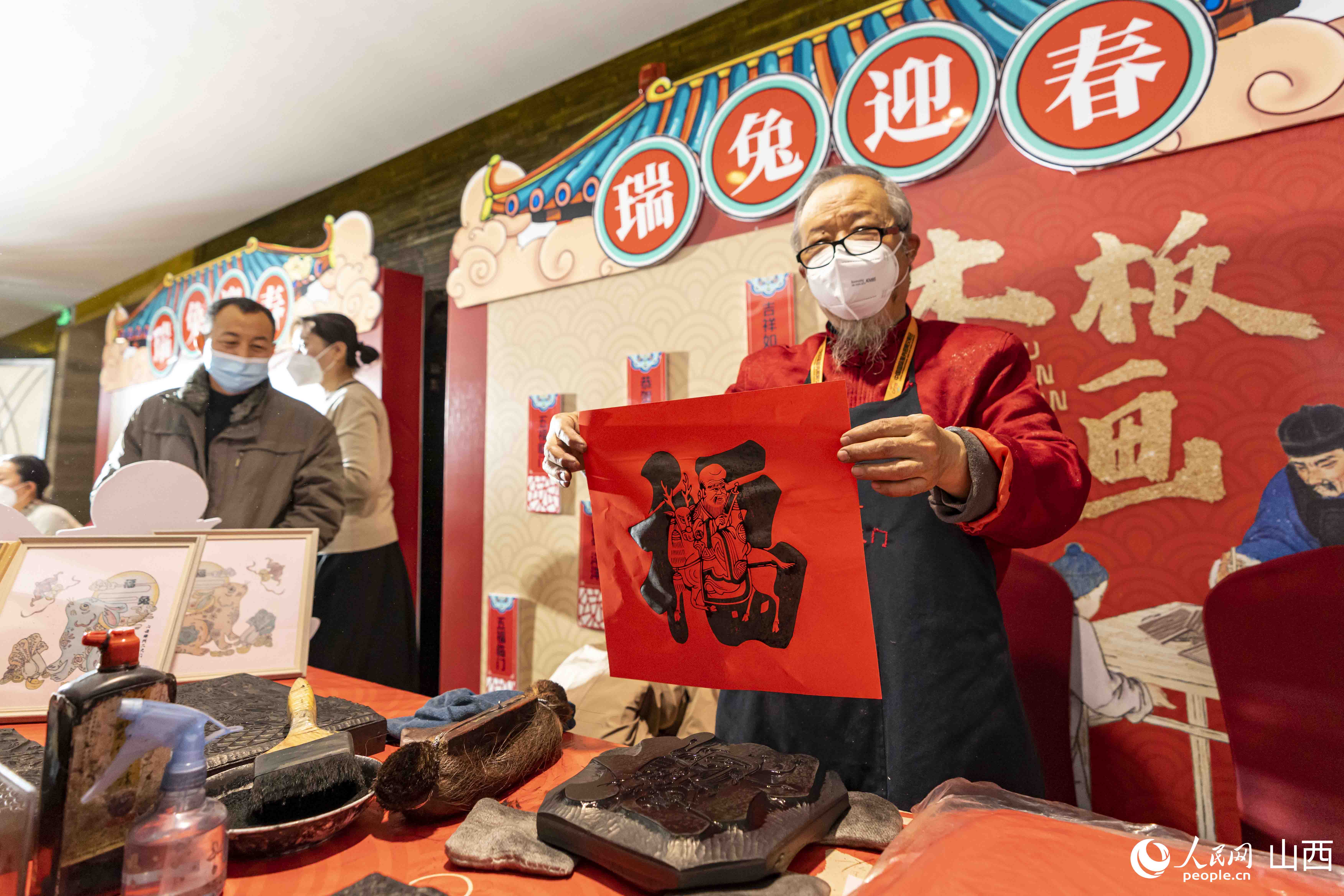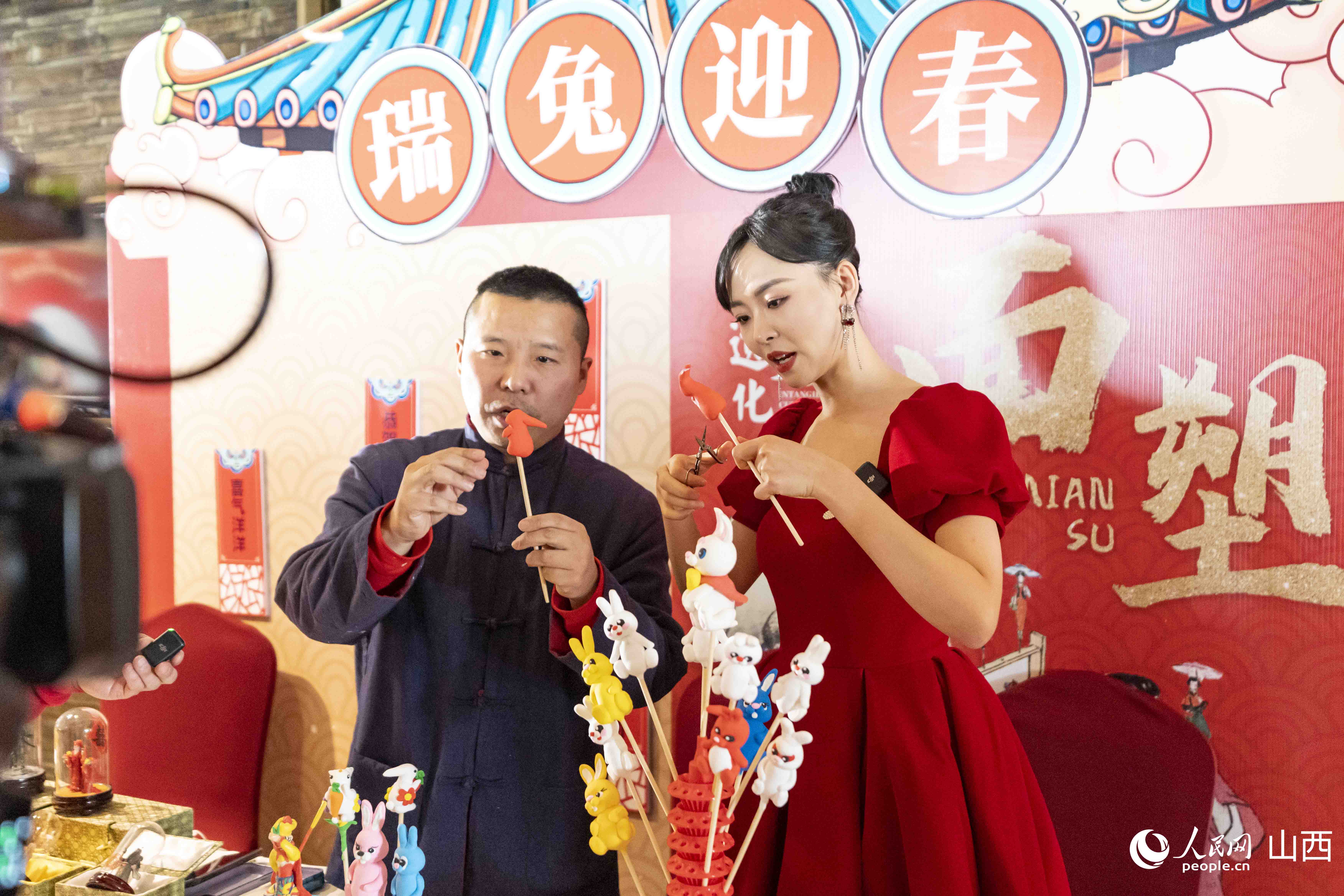 在推介活動現(xiàn)場,精心布置了“新春市集”互動體驗(yàn)區(qū)、年俗非遺互動體驗(yàn)區(qū)、年俗節(jié)目快閃區(qū)等頗具山西特色文化的體驗(yàn)區(qū)域,營造了喜慶、熱烈的春節(jié)氛圍。剪紙、木板年畫、糖畫、面塑等項(xiàng)目,讓現(xiàn)場嘉賓沉浸式體驗(yàn)山西非遺的獨(dú)特魅力。在山西年俗表演快閃區(qū)域,舞獅表演、旱船等山西社火表演,讓濃濃的年味迎面撲來?;顒又?,飽含山西大院文化符號、中國結(jié)等元素,寓意團(tuán)圓美滿的山西文旅兔年IP形象“晉小美”也首次亮相。