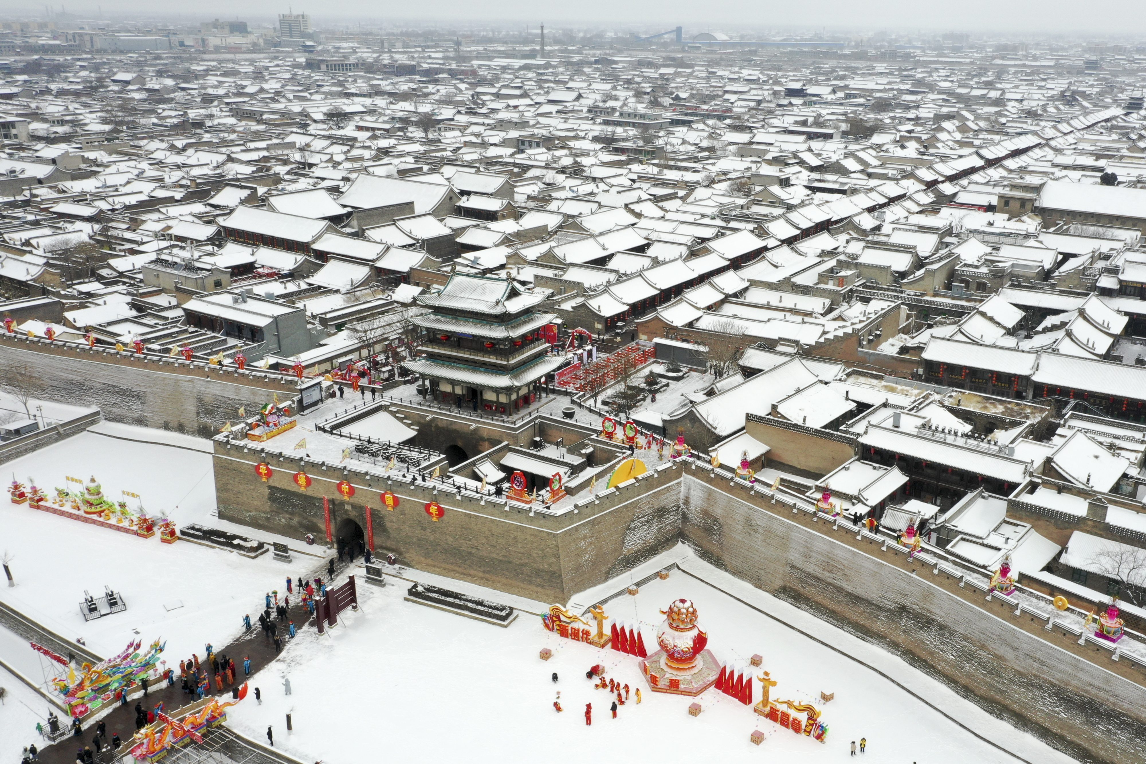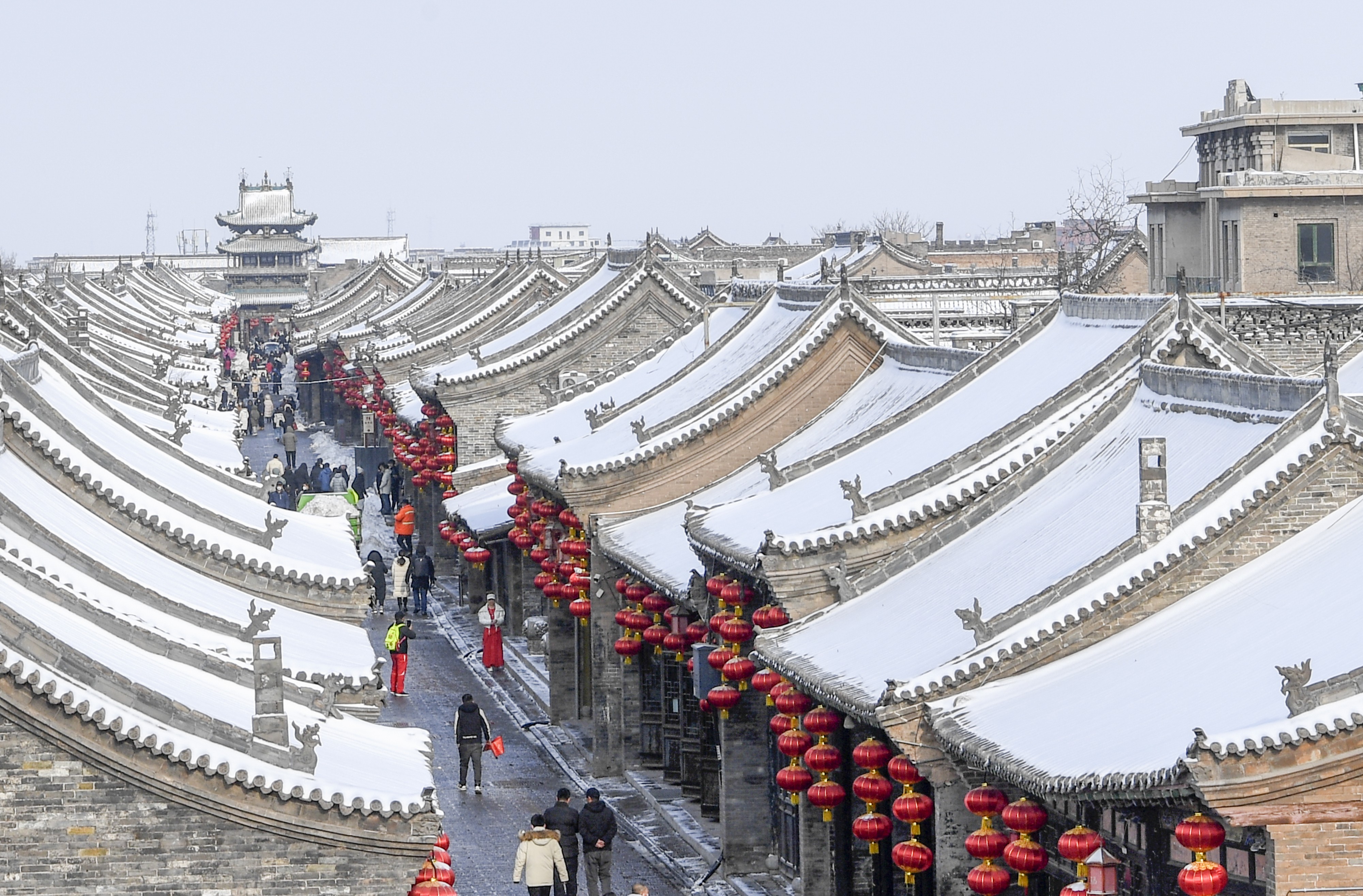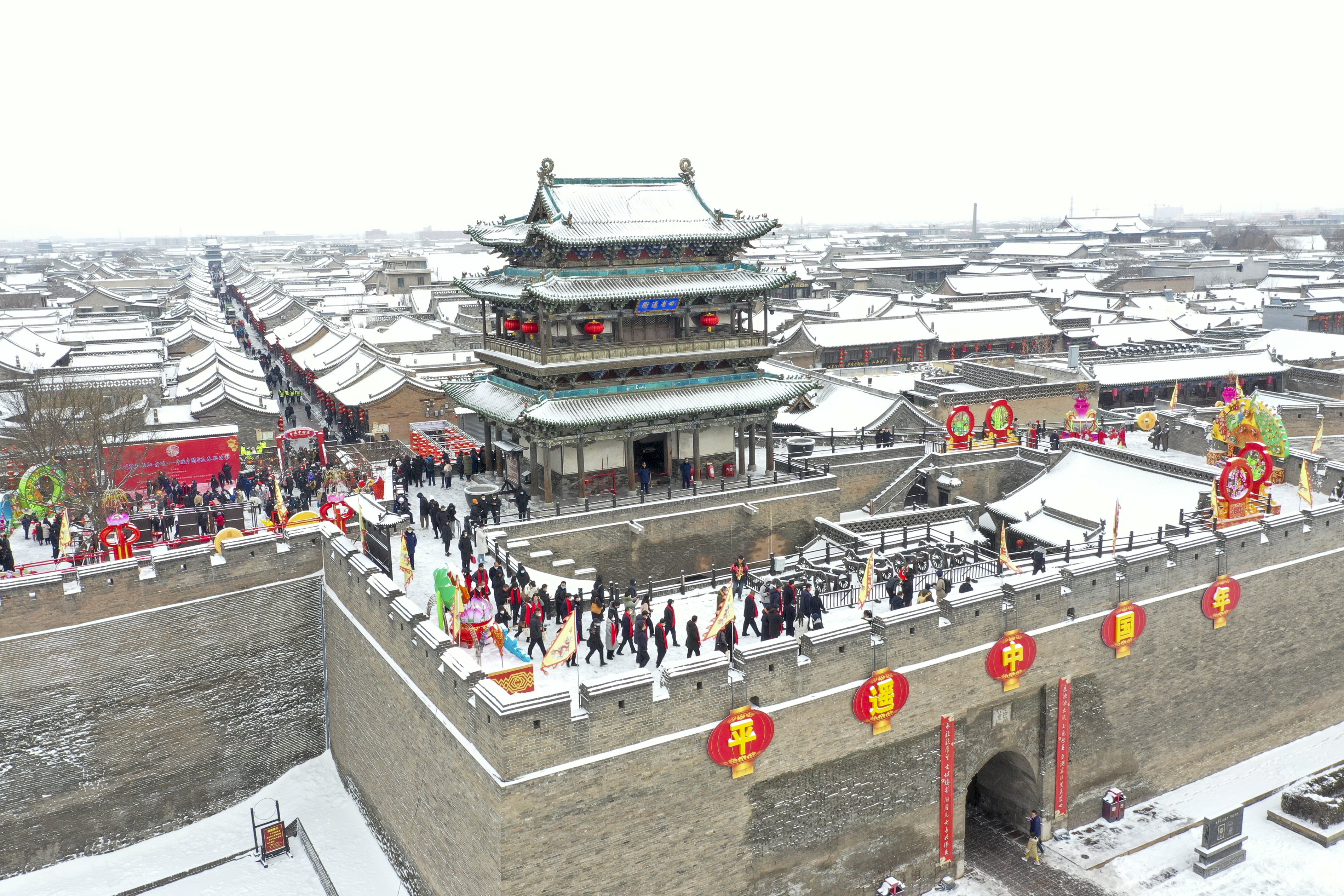 1月14日,山西省晉中市平遙縣迎來入冬以來首場降雪,雪中的平遙古城銀裝素裹,美景如畫。當(dāng)日,恰逢2023年“我們的節(jié)日·春節(jié)——平遙中國年”活動在這里啟幕,來自各地的游客在雪中游覽古城,別有一番韻味。(梁生仁攝)