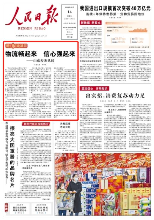 新春走基層 | 人民日報(bào)頭版頭條聚焦山東壽光:物流暢起來,信心強(qiáng)起來!