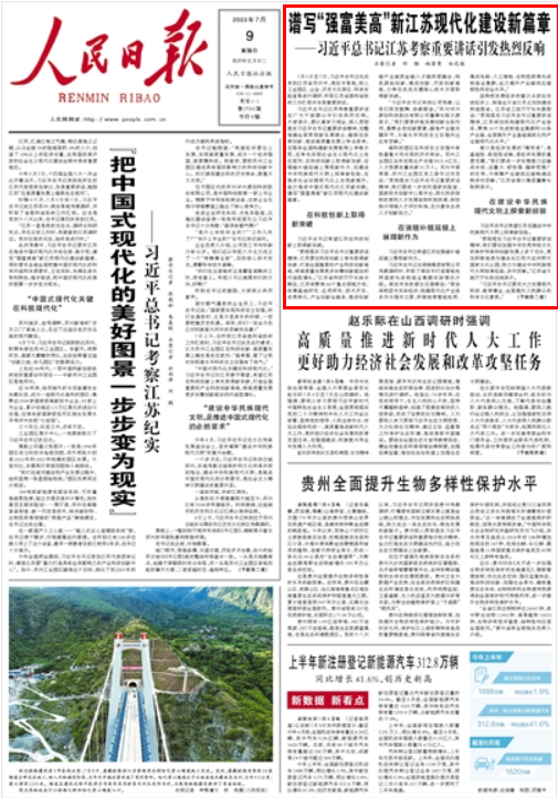人民日報丨譜寫“強(qiáng)富美高”新江蘇現(xiàn)代化建設(shè)新篇章——習(xí)近平總書記江蘇考察重要講話引發(fā)熱烈反響