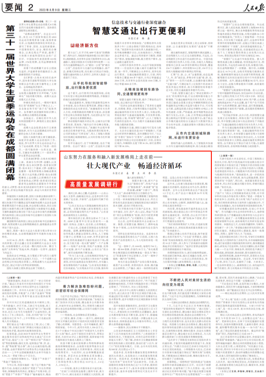 人民日報(bào)點(diǎn)贊山東:壯大現(xiàn)代產(chǎn)業(yè) 暢通經(jīng)濟(jì)循環(huán)