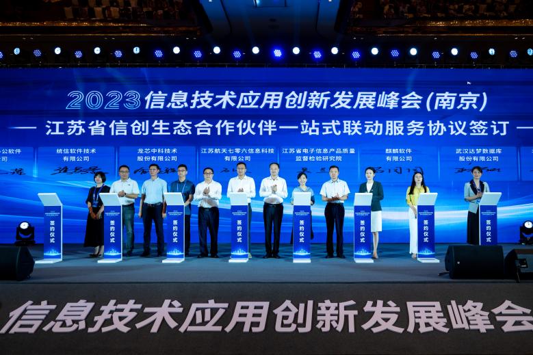 8月22日,2023信息技術(shù)應(yīng)用創(chuàng)新發(fā)展峰會(huì)在南京開(kāi)幕。作為南京軟博會(huì)重要活動(dòng)之一,本次峰會(huì)以“信心引領(lǐng) 創(chuàng)造機(jī)遇 引航未來(lái)”為主題,聚焦信息技術(shù)應(yīng)用創(chuàng)新生態(tài)建設(shè)。會(huì)上,15家單位簽訂江蘇省信創(chuàng)生態(tài)合作伙伴一站式聯(lián)動(dòng)服務(wù)協(xié)議。