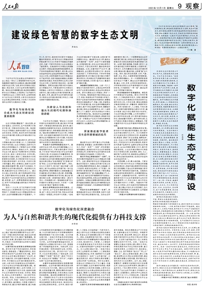 人民日報整版探討:數(shù)字化、智能化為生態(tài)文明建設提供新路徑