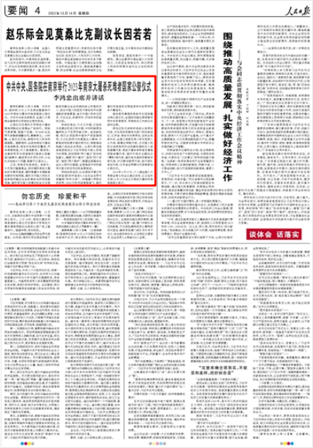 人民日?qǐng)?bào)|中共中央、國(guó)務(wù)院在南京舉行2023年南京大屠殺死難者國(guó)家公祭儀式