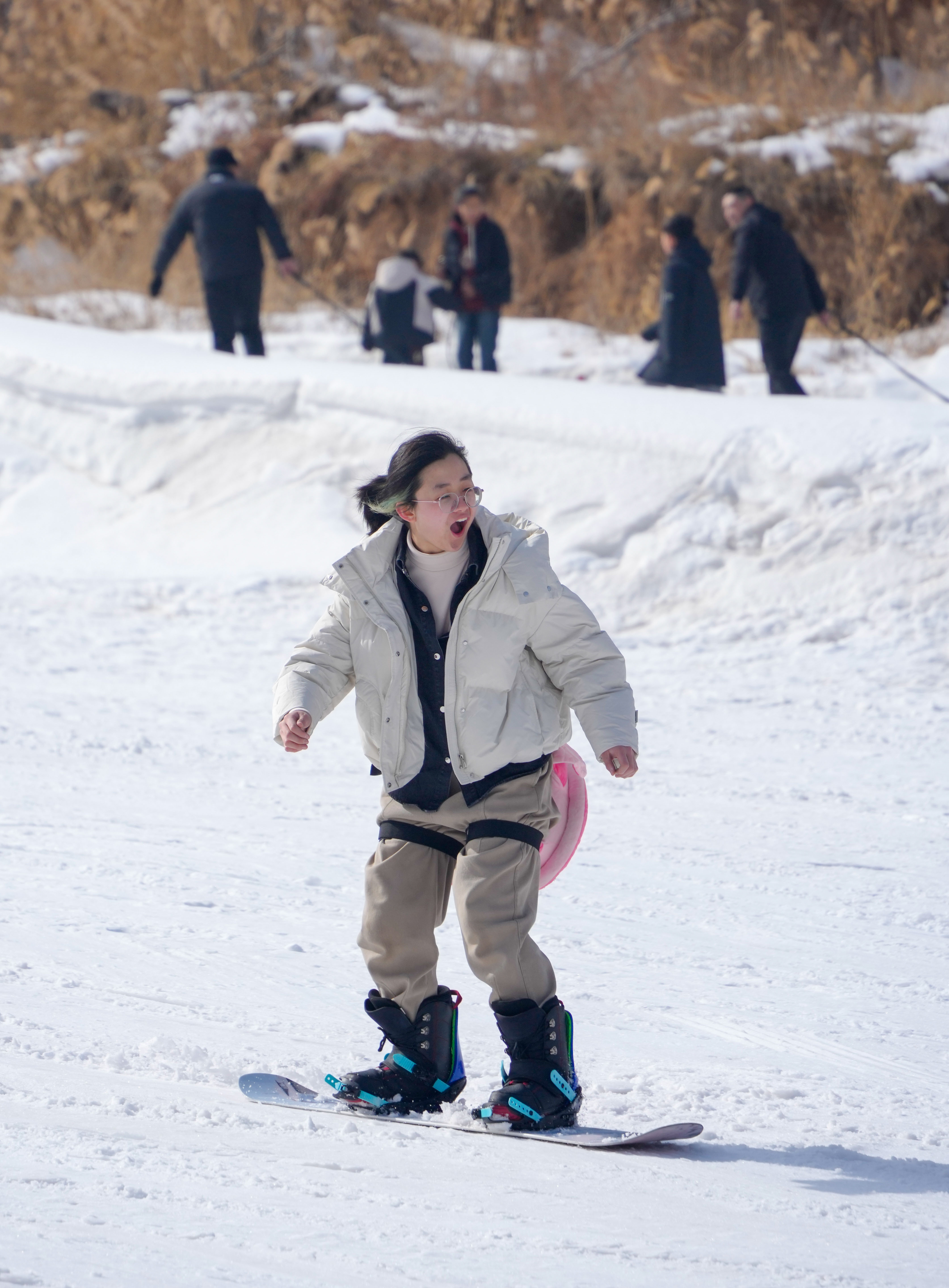 從滑雪坡上乘滑雪圈疾馳而下,大朋友、小朋友“全副武裝”盡情撒歡,游客們在冰雪運動中增強體質,樂享春節(jié)假期生活。(閆鑫 攝)