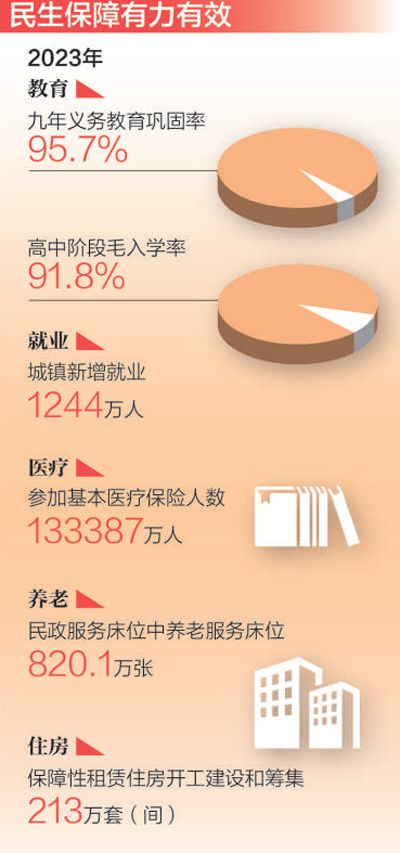 數(shù)據(jù)顯示,2023年,全國居民人均可支配收入實際增長6.1%,快于同期GDP增速;全國城鎮(zhèn)新增就業(yè)1244萬人,就業(yè)保持總體穩(wěn)定;疊加降價和醫(yī)保報銷,2023年協(xié)議期內(nèi)談判藥為患者減負(fù)超2000億元……一張張民生清單,給百姓生活帶來了看得見、摸得著的可喜變化,不斷增強(qiáng)人民群眾的獲得感、幸福感、安全感。