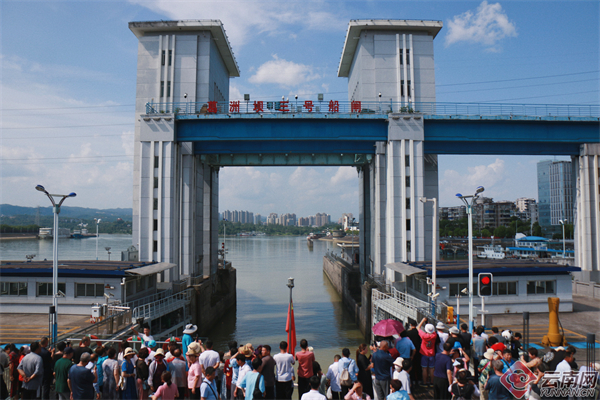 游輪經過葛洲壩船閘