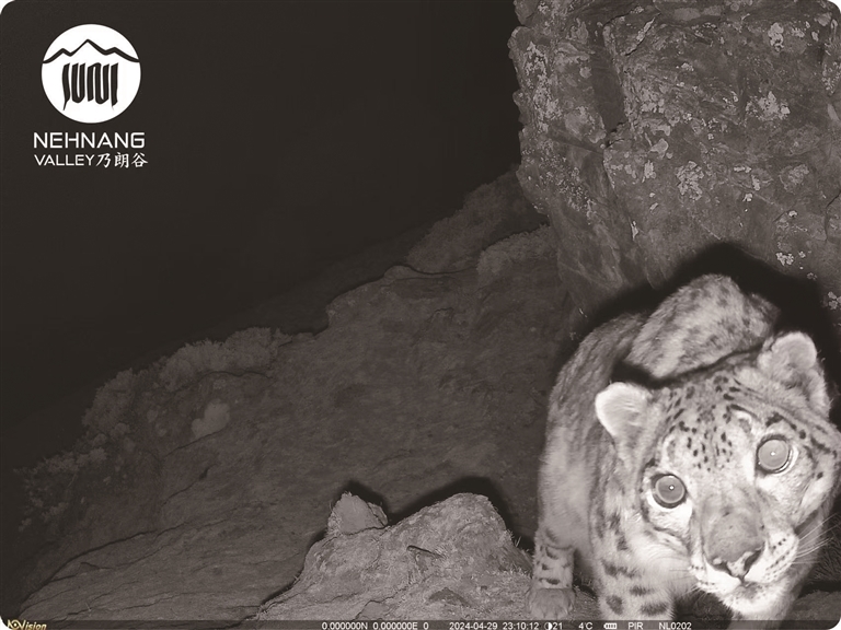 這些巡護員負責執(zhí)行紅外相機監(jiān)測任務,包括紅外相機布設和每三個月一次的回收數(shù)據(jù)。雪豹媽媽拉姆的蹤跡就是通過這些紅外相機收集到的。李義旺解釋說,巡護員們不僅負責維護他們所在區(qū)域或附近的相機,還要定期向中心反饋相機的情況,比如相機是否損壞,拍到了什么內(nèi)容。此外,他們還會參與到防熊工作中,帶領團隊勘察哪些牧戶遭遇了熊害或存在威脅。另外,還有聯(lián)合執(zhí)法部門開展反盜獵巡護工作。“他們平時在放牧的過程中遇到野生動物,也會積極在巡護員群里報告,包括在哪里看見的,多高的海拔,巡護員會在專門的奧維地圖上面打上點位,有利于了解乃朗谷內(nèi)野生動物的分布狀況。”李義旺補充道。