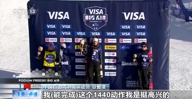 中國自由式滑雪運(yùn)動(dòng)員 谷愛凌:我(能完成)這個(gè)1440動(dòng)作我是挺高興的,因?yàn)槲沂莿倓倢W(xué)會(huì)的,我在奧地利訓(xùn)練的時(shí)候是(2021年)11月份學(xué)會(huì)的,所以能從三個(gè)禮拜前學(xué)會(huì)到現(xiàn)在比賽中(完成),我也是非常高興。這個(gè)是歷史上第一次有女子在比賽中完成這個(gè)高難度動(dòng)作。
