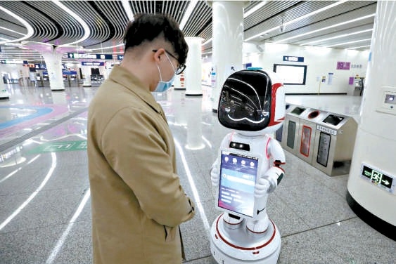 可問首末車時(shí)間、可查航班信息、可在站內(nèi)導(dǎo)航……昨天(7日),北京地鐵大興機(jī)場線草橋站新“員工”——首批車站智能服務(wù)機(jī)器人正式上崗。乘客在站內(nèi)遇到問題可向它提問,近距離體驗(yàn)智慧地鐵的服務(wù)。
