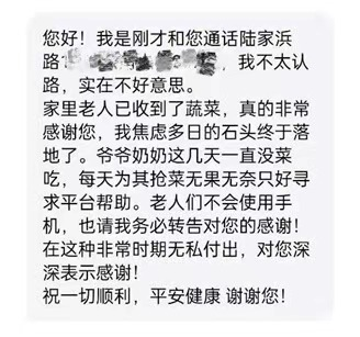 宋志勇的母親是一位使用智能手機(jī)不太“靈光”的老人。想到連短信都不會(huì)發(fā)的母親,再看到老人家屬代發(fā)的感謝短信,宋志勇覺得自己能成為應(yīng)急特需保供的一員挺榮幸。