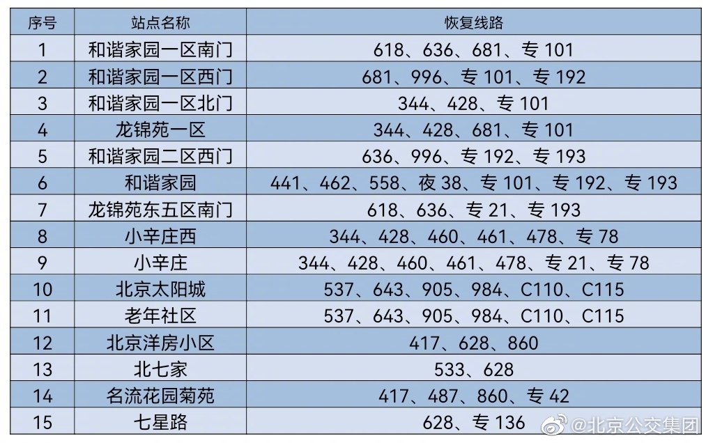 央廣網北京6月16日消息 據(jù)北京公交集團官博消息,按照防疫工作要求,自2022年6月16日首班車起,對前期途經昌平區(qū)封管控區(qū)域周邊采取甩站措施的35條線路以及前期途經豐臺區(qū)封管控區(qū)域周邊采取甩站措施的18條線路,恢復正常運營,恢復信息詳見下表。