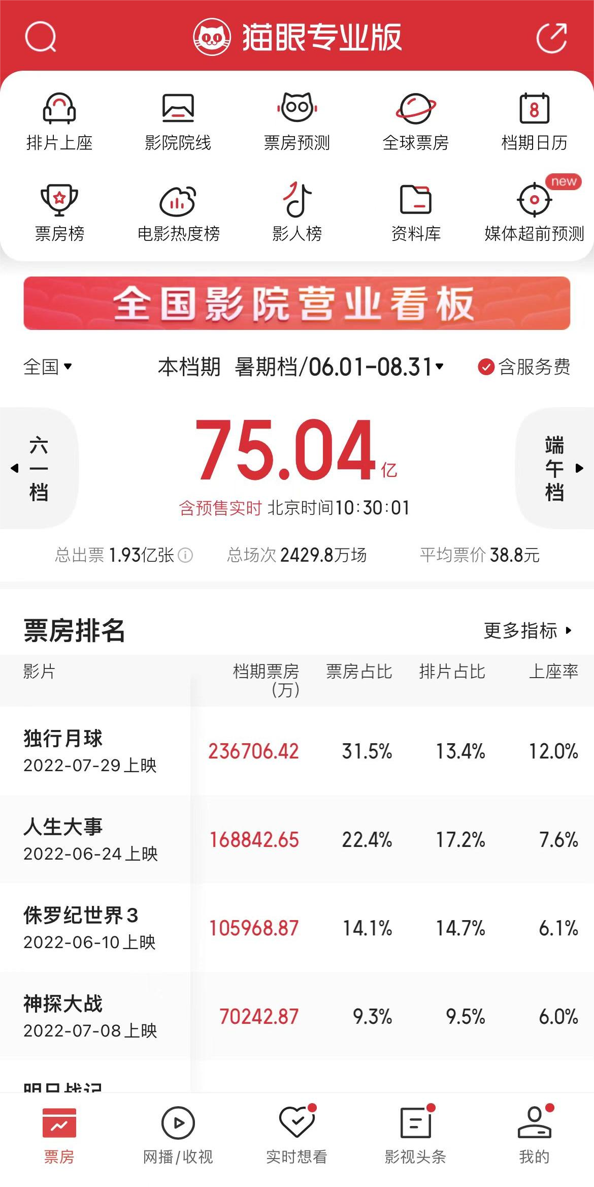 破75億!2022年暑期檔總票房已超過去年暑期檔