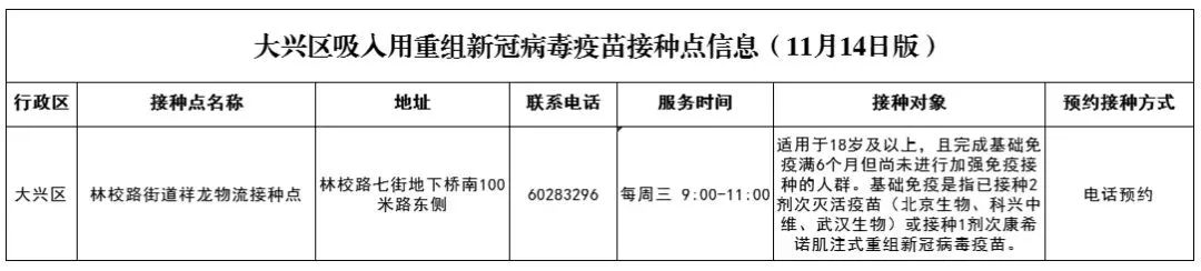 北京大興區(qū)可預(yù)約接種吸入式疫苗