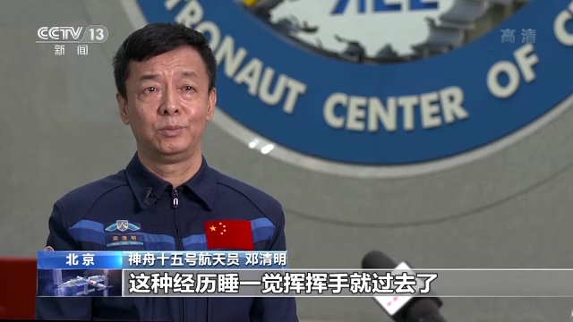 神舟十五號航天員 鄧清明:壓力是肯定有,但是我覺得有我們?nèi)齻€人共同的努力,有天地之間大協(xié)作,有地面的支持,這種壓力不算什么。我還是喜歡干有挑戰(zhàn)性的活,人生因奮斗而精彩,講的就是這個意思。