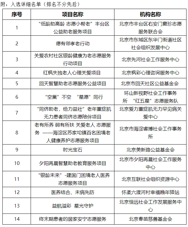 北京:14個養(yǎng)老志愿服務(wù)項目入選“銀齡伙伴”資助名單