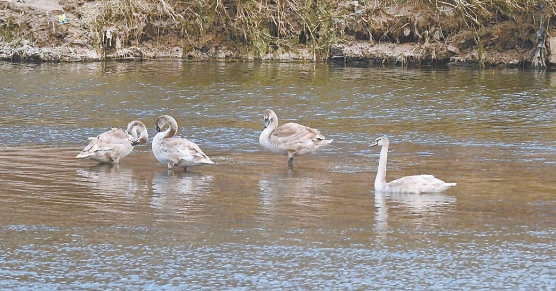 溫榆河沙子營閘到下辛堡段的河面上,鳥兒們戲水的熱鬧景象為肅殺的冬日增添了一抹靈動(dòng)和生機(jī)?!翱炜?,是不是天鵝?”鳥類專家吳嵐發(fā)現(xiàn),主河道寬闊的水面上,一只灰色鳥兒正在游弋鳧水。觀鳥鏡頭里,鳥兒脖頸細(xì)長、體態(tài)優(yōu)雅,身上白色羽毛里夾雜了些許灰色。它身后不遠(yuǎn)處的河畔淺灘,還有四只樣貌相似的鳥兒,時(shí)而埋頭梳理羽毛,時(shí)而舒展翅膀,時(shí)而又排成“一”字去河里游泳覓食……