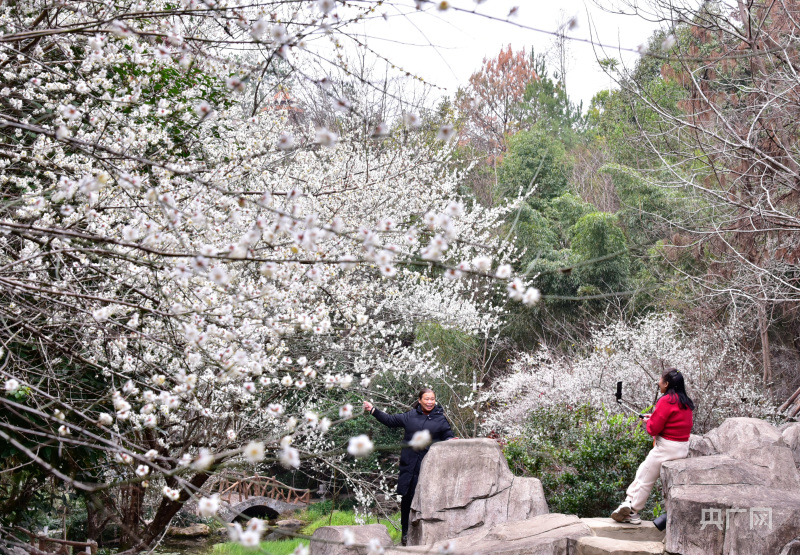 游客正在與梅花拍合照(央廣網(wǎng)發(fā) 葉婷婷 攝)