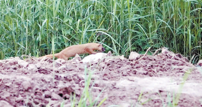 黃鼬在修復完成的野鴨湖濕地示范區(qū)活動(資料照片)。野鴨湖濕地自然保護區(qū)供圖