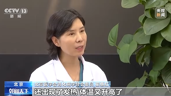 北京醫(yī)學(xué)會消化病學(xué)分會委員 翟惠虹:到了夏天的時候,如果當(dāng)您吃完了食物之后,莫名其妙地就開始嘔吐,伴隨著上廁所的次數(shù)增加,就要警惕了,有可能就是腸道感染了,最好及時到醫(yī)院去。那么如果在這個上吐下瀉的過程中,還出現(xiàn)了發(fā)熱、體溫又升高了,不管這個體溫是低熱還是高熱,我建議您一定要到醫(yī)院接受相應(yīng)的診斷和治療。