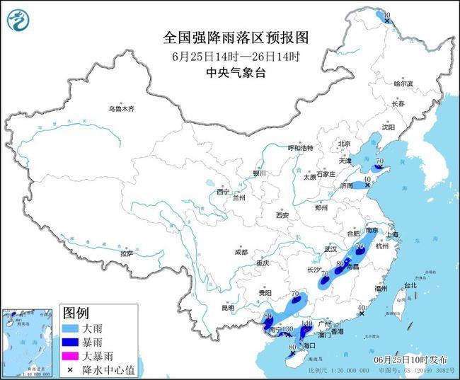 中央氣象臺6月25日10時繼續(xù)發(fā)布暴雨黃色預(yù)警: