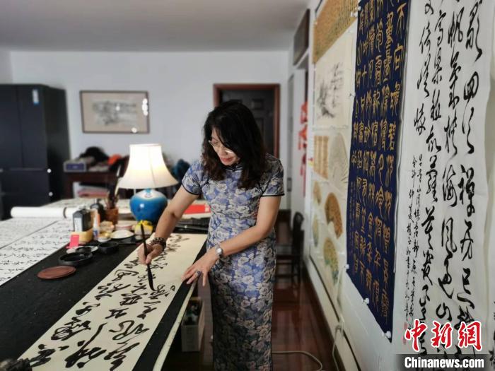 她回憶,有一次,在美國(guó)讀書(shū)的孫子向她要了一件書(shū)法作品去參加學(xué)校的義賣?!傲x賣時(shí),這幅作品是第一件被買走的,說(shuō)明美國(guó)人也開(kāi)始理解漢字書(shū)法的美。我的女婿是西班牙人,他也很喜歡書(shū)法。漢字與書(shū)法歷經(jīng)五千年的淬煉,是老祖宗留給我們的寶貴遺產(chǎn)。兩岸同胞有義務(wù)將它傳承、守護(hù)好?!?完)
