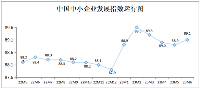 中國(guó)中小企業(yè)協(xié)會(huì)今天(10日)發(fā)布,隨著推動(dòng)經(jīng)濟(jì)回暖向好的政策措施持續(xù)發(fā)力生效,我國(guó)經(jīng)濟(jì)總體保持恢復(fù)態(tài)勢(shì),中小企業(yè)發(fā)展指數(shù)止跌回升。6月中國(guó)中小企業(yè)發(fā)展指數(shù)(SMEDI)為89.1,比上月上升0.2點(diǎn),結(jié)束連續(xù)3個(gè)月下降態(tài)勢(shì),且高于2022年同期水平。