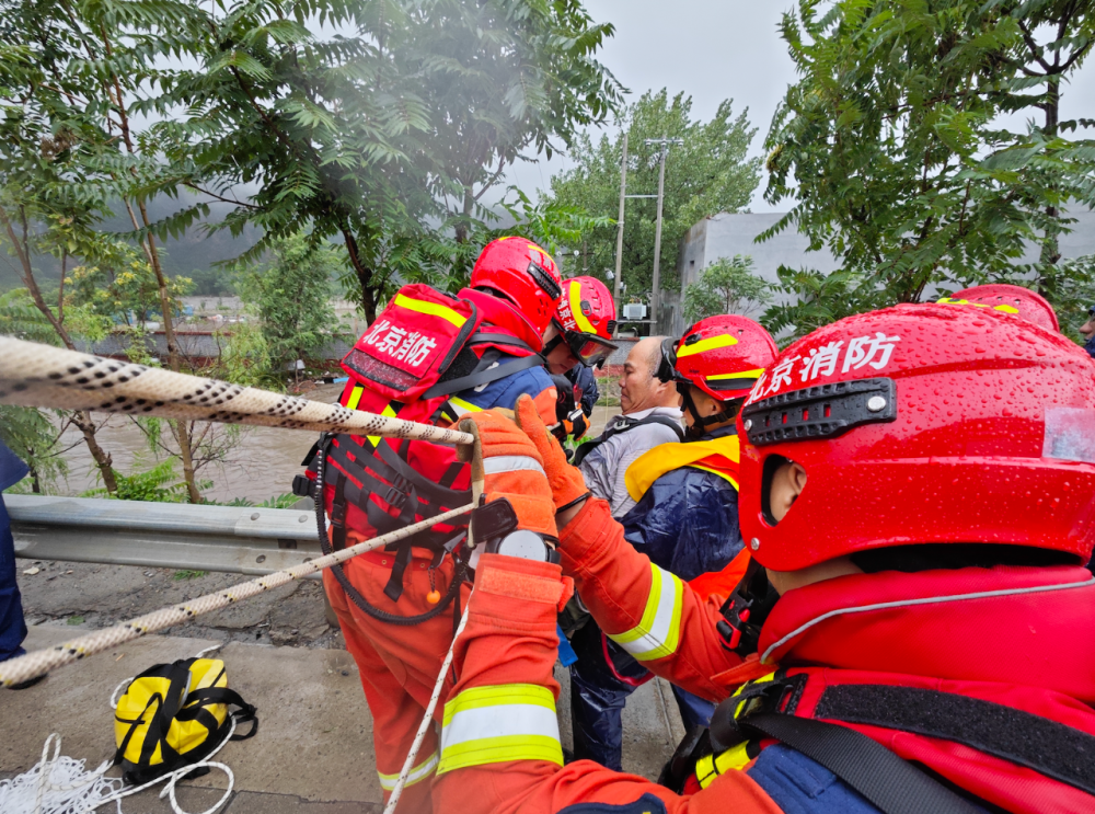13時(shí)許,在房山區(qū)青龍湖鎮(zhèn)救援安置了少年軍校基地被困人員后,北京消防特勤支隊(duì)的救援人員又接到報(bào)警稱(chēng),在距離此處9公里外的漫水河水文站有人員被困,現(xiàn)場(chǎng)指揮員立刻分派力量前往現(xiàn)場(chǎng)進(jìn)行救援。