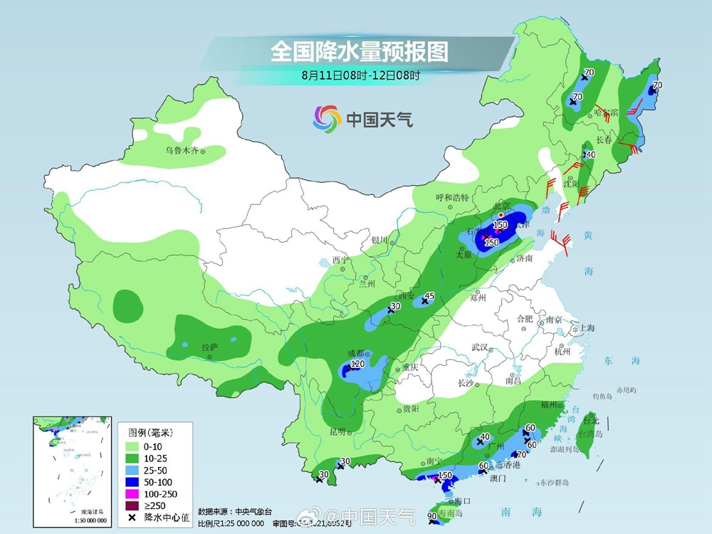 受高空槽東移和低渦切變系統(tǒng)共同影響,今明兩天(8月11日至12日),京津冀地區(qū)將再度遭遇新一輪強(qiáng)降雨天氣過程,部分地區(qū)雨勢強(qiáng)勁,需注意防范。