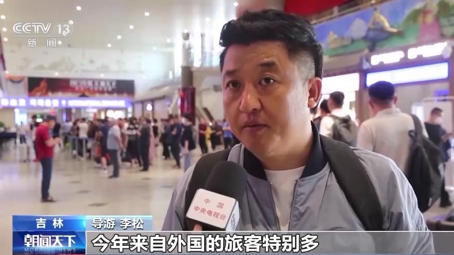 導(dǎo)游 李松:今年來自外國的旅客特別多,這個團是這個月我?guī)У牡谖鍌€團了。