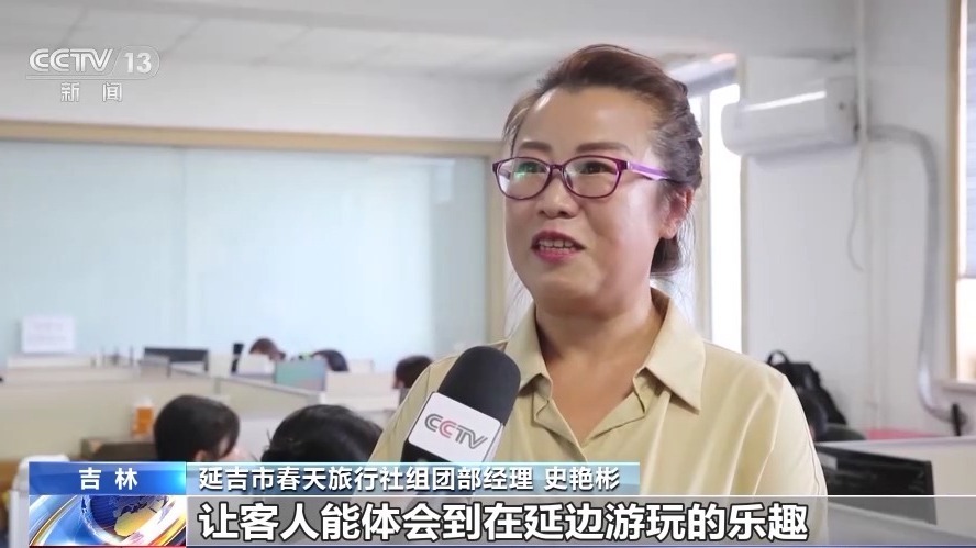 延吉市春天旅行社組團部經(jīng)理 史艷彬:比如說有3天的、4天的、2天的,甚至有一日游都可以,讓客人體會到在延邊游玩的樂趣。就我們旅行社今年從4月份開始,已經(jīng)接待了國內(nèi)外的游客8000多人,這個比往年同期,漲的比例是非常高的。