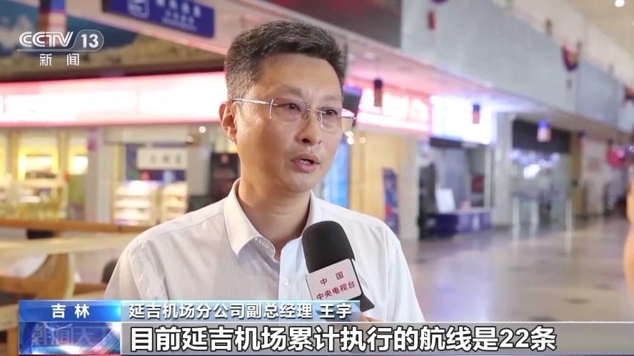 延吉機場分公司副總經(jīng)理 王宇:目前延吉機場累計執(zhí)行的航線是22條,國內(nèi)航線18條,國際航線4條。每周能達到對韓國的航線84班,對韓國的航班量位居?xùn)|北的第一位。