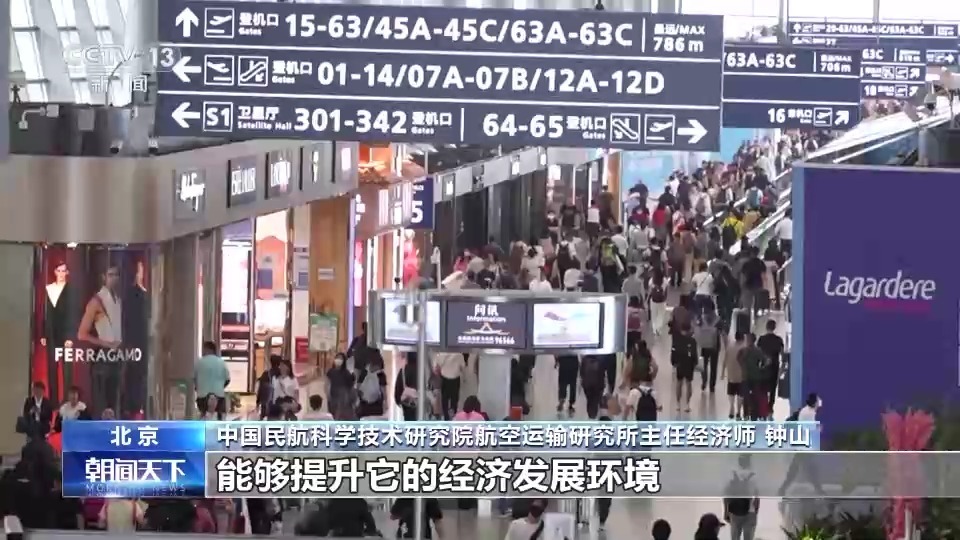 中國民航科學技術(shù)研究院航空運輸研究所主任經(jīng)濟師 鐘山:通過我們這種“干支通、全網(wǎng)聯(lián)”以及通程航班的模式,能夠讓我們?nèi)?、四線城市的旅客,融到整個國家的經(jīng)濟社會建設(shè)中,能夠提升它的經(jīng)濟發(fā)展環(huán)境。特別是從統(tǒng)一大市場的開放角度來看,這個是最終能夠促進我們國內(nèi)市場的銜接。