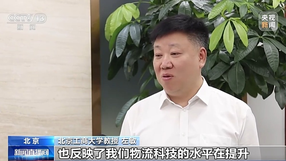 北京工商大學教授 左敏:設施設備利用率的提升,也反映了我們物流科技的水平在提升。因為物流科技這種智能化的運作可以導致我們整個效率大幅的提升。