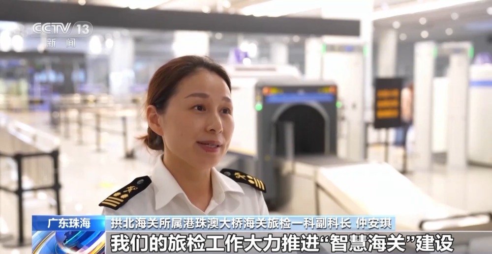 拱北海關(guān)所屬港珠澳大橋海關(guān)旅檢一科副科長(zhǎng) 仲安琪:我們的旅檢工作大力推進(jìn)“智慧海關(guān)”建設(shè),在智能CT機(jī)、高低溫探測(cè)儀等智慧旅檢監(jiān)管設(shè)備的輔助下,我們監(jiān)管更加“耳聰目明”。此外,我們還通過(guò)信息互換、視頻共享、安保互助等手段加強(qiáng)與港澳海關(guān)、聯(lián)檢單位、大橋管理部門等單位的應(yīng)急處突合作,保障人流高峰時(shí)段旅客高效通關(guān)。