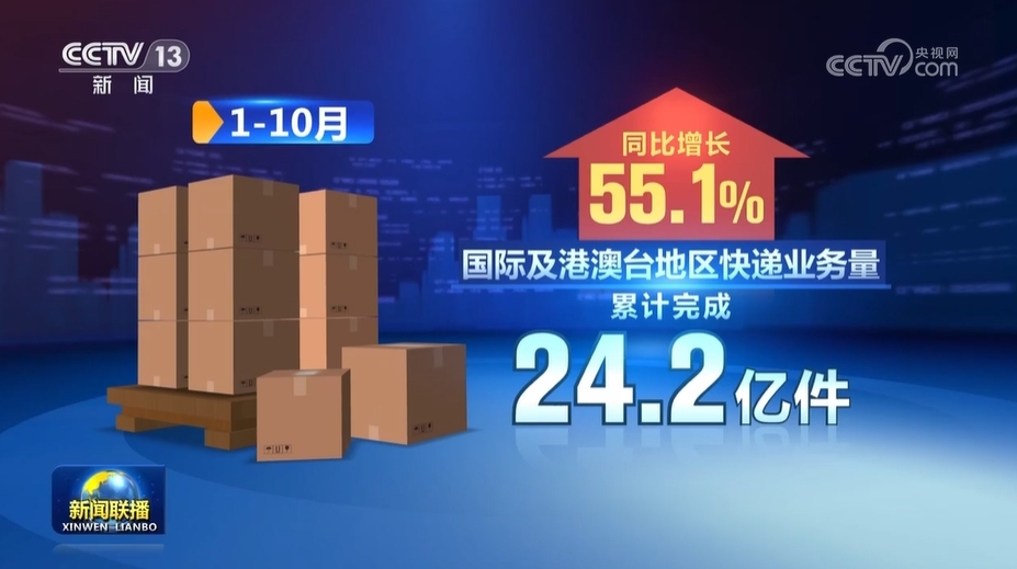 隨著我國主要快遞企業(yè)布局國際寄遞網(wǎng)絡,加快海外倉建設,新開通多條國際全貨機航線,通過為消費者提供全鏈路跨境電商寄遞服務,郵政快遞業(yè)在促進產(chǎn)品跨境流動中的作用明顯增強,國際供應鏈產(chǎn)業(yè)鏈保障水平進一步提升。1—10月,國際及港澳臺地區(qū)快遞業(yè)務量累計完成24.2億件,同比增長55.1%。