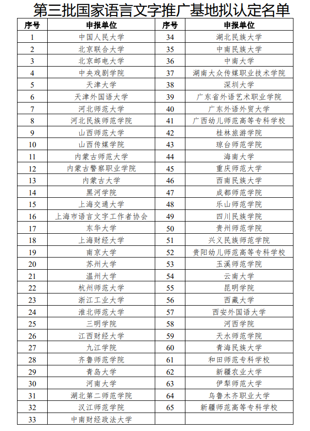 第三批國家語言文字推廣基地擬定名單(圖源:教育部官網)