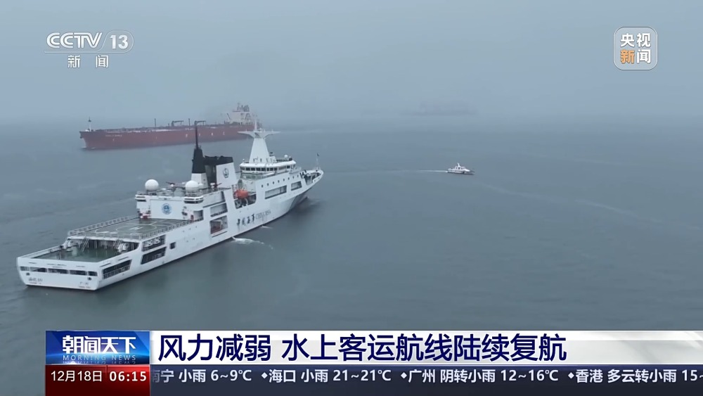 從12月17日12時起,根據(jù)海面風(fēng)力情況,廣東珠海市內(nèi)往返海島航線陸續(xù)復(fù)航,預(yù)計18日全部復(fù)航。江門川山群島海上客運(yùn)航線于12月17日下午陸續(xù)復(fù)航,汽車渡運(yùn)預(yù)計于12月18日復(fù)航。
