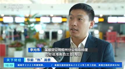 某航空公司鄭州分公司總經(jīng)理 李光偉:目前比較火熱的是春運期間的一些旅游航線,比如海南的三亞、???,云南的昆明、西雙版納等熱門航線。相較于11月份、12月份,增長了10倍左右,票比較緊張。